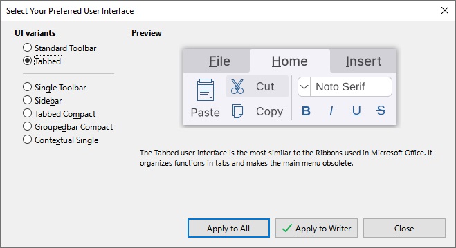 Para cambiar la interfaz gráfica a una parecida a la de Word